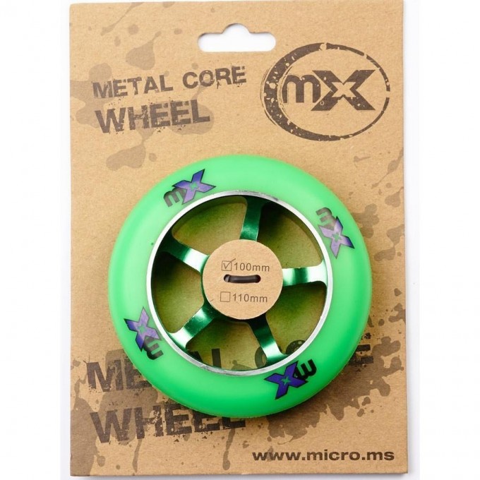 Колесо MICRO для трюкового самоката 100 мм зелёное/зелёное MX1211